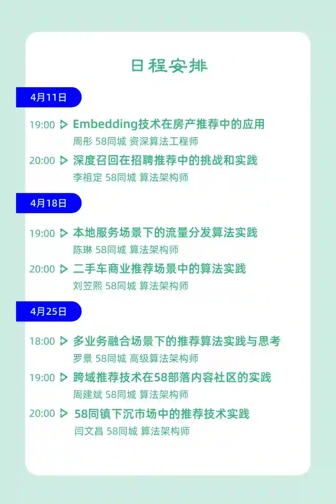 6. 跨域推荐技术在58部落内容社区的实践 | 19:00