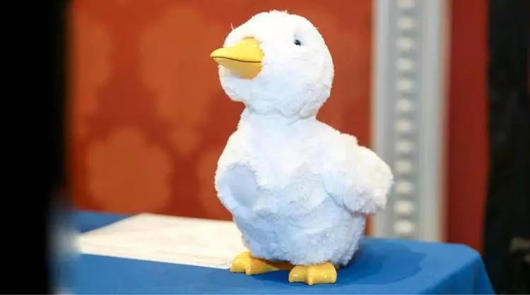 毛茸茸的外表下,这款小鸭子在身体的多个部位安装有触控元件,当你伸出手抚摸时,小鸭子会有「感知」,并做出相应的反应,比如你摸它的头时,它会张嘴并发出欢快的声音,尽管无法向前移动,但摸一摸不同部位做出反馈的交互,实际上和展会上索尼带来的机器狗 AIBO 有相通之处。
