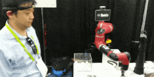 在展会上,我们见到了可以通过脑电波控制的机械臂,通过将特殊的监测器 Focus 1 戴在头上,利用脑电波,你就能控制及机械臂做出抓取小球放在箱子里的运动动作,BrainCo 官方告诉我们,它们做这件事的目的,是让很多行动不便的人拥有一个能自由活动的可能。