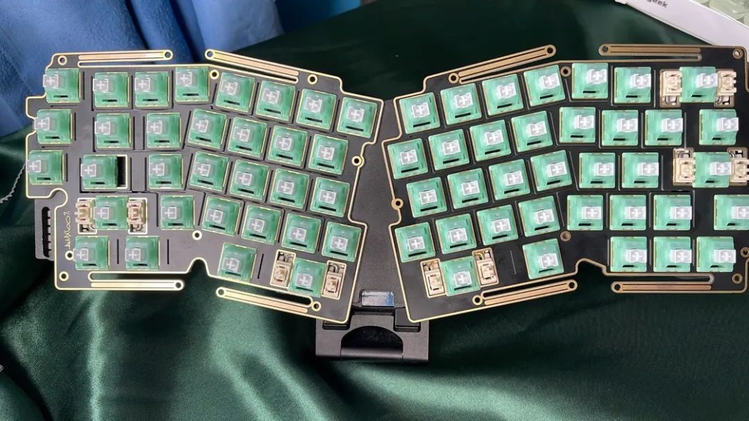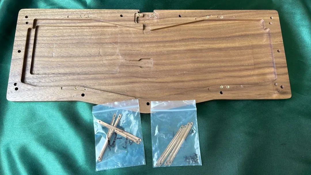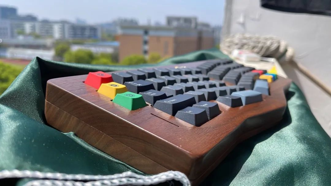 ▍前言键盘的配列布局,无奇不有,键盘圈子里总是有你想不到的,但没有做不到的。从早些年的全配列独占鳌头到 98% 配列的大火、65% 的井喷,谁更受欢迎,莫衷一是。作为一个键盘爱好者,我对于那些奇奇怪怪的键盘配列甚是钟爱,然而,如果要说这些年里哪种不那么主流的键盘配列成为了真正的现象级,那 Alice 配列绝对是当仁不让。它的上手门槛相对较低,因此社区里也频繁推出新品。在过去几年中,我也收集把玩了不少 Alice 键盘。不过,若是一般的公模 Alice 套件,也无太多可讲之处。但今天要简评的 AMX60,确实是有点意思,它是由一家专注木质键盘的工作室——匠人学院开团制作,是一款木质外壳的 Alice 键盘。团购后等了足足半年,它才终于到达我的手中。键盘本身可选 top 和 leaf-spring mount 结构,也可无铍铜缓冲片安装。来自 GB 帖▍开箱包装方面,AMX60 直接将套件本体和配件放入了定制的收纳包内,用合页隔离。不过不同于传统的收纳包,这次包体内部对 Alice 外形有适配定制,值得好评。不过像是 Alice 配列的键盘,基本超过 65% 我就不会考虑外出携带了,因为 Alice 分裂布局使得 65% 占地面积直逼 80%,外出携带方面我可能会更倾向于传统 65% 和矮轴键盘。配件方面,除开外壳和内胆,这次还额外赠送了老周自己开模的卫星轴和航插线以及与外壳匹配的木质手托。定位板则是 FR4 材质,高弹有腿设计,既适配 Spring 的铍铜结构,也能直接适配上下盖安装。▍外壳外壳材质选用了北美黑胡桃木实木,不过我自己对于木材没有多少了解,对此也难有合理的判断,懂行的朋友可以在评论区里分享你的看法。如果从机加工角度来看的话,相较于传统键盘,Alice 键盘的加工难度要更高。同时,木质键盘的加工相较于传统铝合金材质确实是要更加小众和困难。设计语言方面,正面除了左下角一个灯条以外没有其他设计,附赠的三枚 logo 贴纸可以自行进行装饰,不过木质的键盘本身也无需过多的装饰,所以我仅在正上方贴了一枚作为点缀。外壳边缘进行了一定的打磨处理,使其变得圆滑不割手。上下盖接缝设计,不过我个人还是更喜欢天包地或者微微露出底壳的设计。底壳并没有采用隐藏螺丝的设计,自带脚垫,并且额外添加了四颗脚垫备用,以确保安装完成后底部保持平整。▍内胆内胆方面我选择了 AMX60 的双模 PCB 搭配 Owlab 为 Spring 制作的铍铜弹片,组成 leaf-spring mount 结构,默认定位板为开槽 FR4,标配的 EVA 轴上垫、IXPE 夹心棉、轴下垫、底棉。全键热插拔,同时支持阶梯 Caps 这点值得好评。再看内部:上盖部分,由于木质本身有收缩的特性,而 Alice 配列又形状不规则,收缩后的比例控制给加工提出了不小的挑战,尤其是左上角的三颗功能键键位,断裂风险较大。所以它加入了固定板,不过介于 Alice 配列的特殊性,必须在加工到一半时让数控停下来,安装好固定板,再进行左三键的加工,以避免左三键处断裂。底壳部分则是预留出了电池槽位和铍铜安装位置▍组装方案