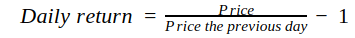 收益的定义是一个观察值与其下一个观察值之间的价格差异。在这种情况下,由于我们观察的是每日的数据,那相对应的收益也将是每日收益。