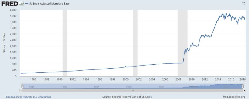 有一个定理是:没有什么东西可以永远一直上升,过去与将来并不趋同。 下面是美国基础货币这些年的走势图。它也涨了很多。
