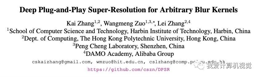 DPSR算法来自论文《Deep Plug-and-Play Super-Resolution for Arbitrary Blur Kernels》:
