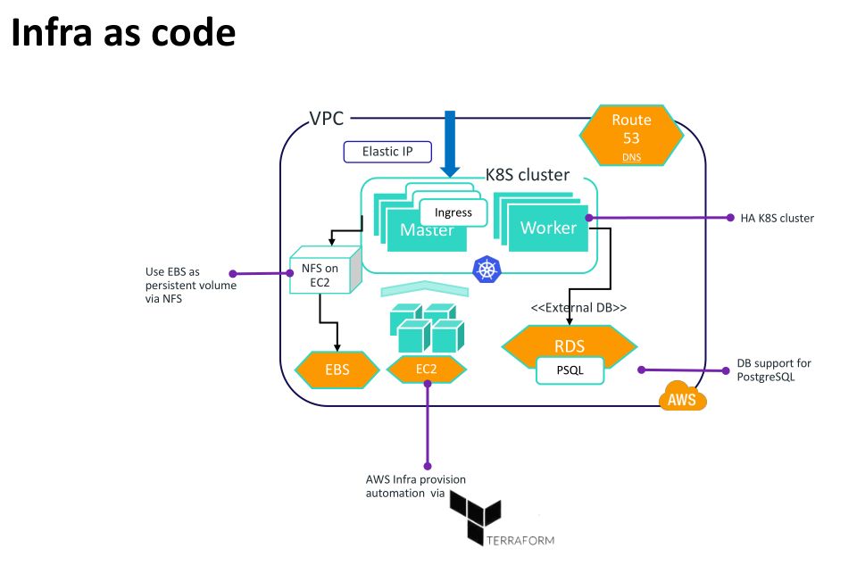 在基础设施上选用了 Docker 和 Kubernetes ,在云平台选用了私有云 Vmware 和公有云 AWS ,并实现了持续部署。