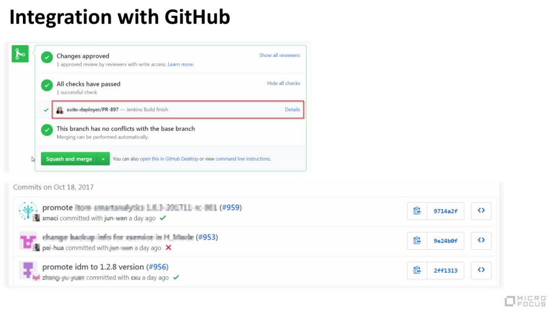 第二,我们有 Promote 的机制,必须是一种灵活和自动化的 Promote 和 Rollback 机制。我们做集成的时候总会挑某一个服务 Stable 版本,以及其他的官方认证过的 Stable 版本,放在一起做集成测试,如果 ok ,那就是新的Stable,如果不可以的话,就 Rollback 回去。这套机制也是借助了 GitHub 的Pull request 方式来完成的。