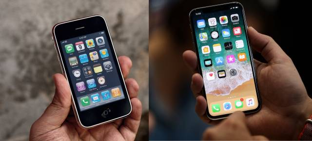 2008 年发布的 iPhone 3GS 和 2017 年发布的 iPhone X