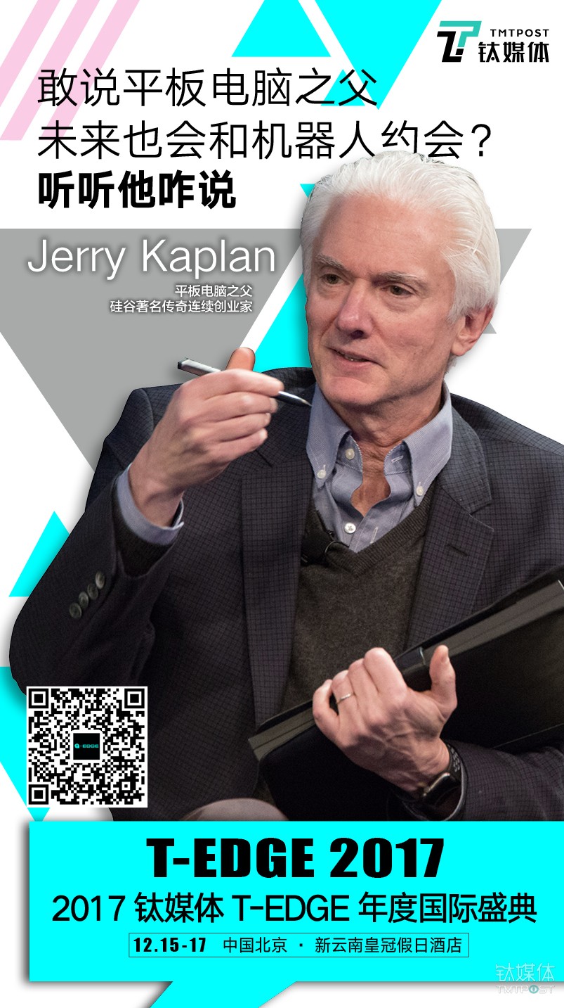 12月15-17日,Jerry Kaplan将空降北京,在2017钛媒体T-EDGE年度国际盛典上,分享其对于AI如何引领产业变革的思考和观点,与你一起直面 AI 的挑战与机遇。