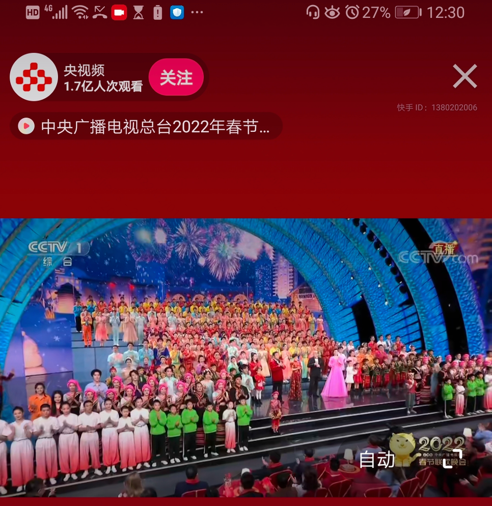 除此之外,快手平台还形成了大量的PGC导向下的优质内容矩阵。值得一提的是,2022年虎年春节,快手再度与央视达成合作,2月1日0:30分数据显示,有超过1.7亿人次观看“央视频”直播的虎年央视春晚。快手通过直播、点播和短视频三种方式,为全球华人提供更便捷、顺畅的春晚观看体验。此外,快手还与11家省市卫视春晚达成合作,以“短视频+直播”的形式为用户们奉上春晚视觉盛宴。