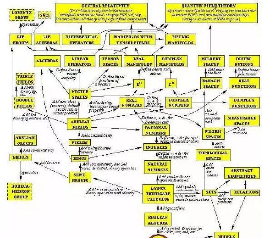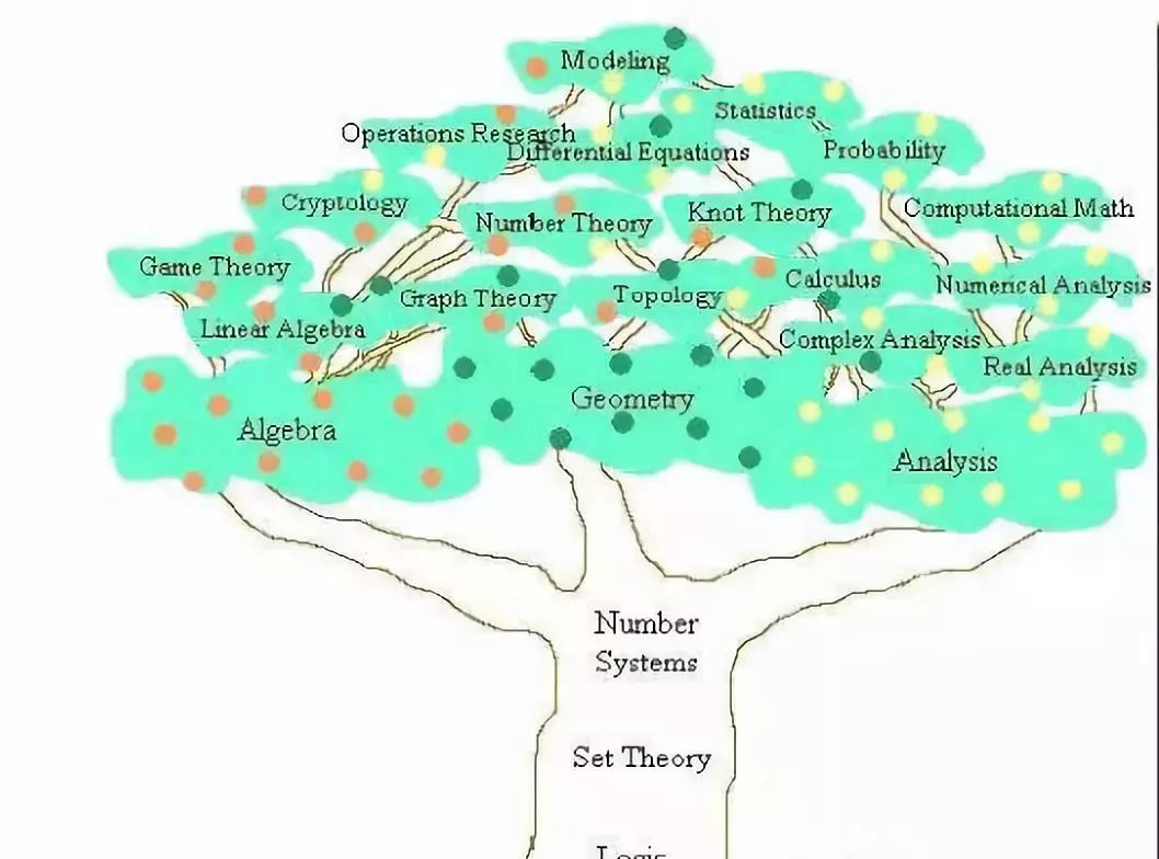 在集合论的基础上,现代数学有两大家族:分析(Analysis)和代数(Algebra)。至于其它的,比如几何和概率论,在古典数学时代,它们是和代数并列的,但是它们的现代版本则基本是建立在分析或者代数的基础上,因此从现代意义说,它们和分析与代数并不是平行的关系。