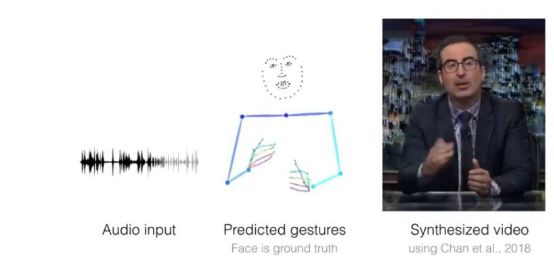 使用的数据集:通过Youtube获取演讲者特有姿势的数据集。总共有时长为144小时的视频。研究人员将数据分类,80%用于训练,10%用于佐证,剩下的10%用于测试集,因此每一段视频源只在一个集合中出现。