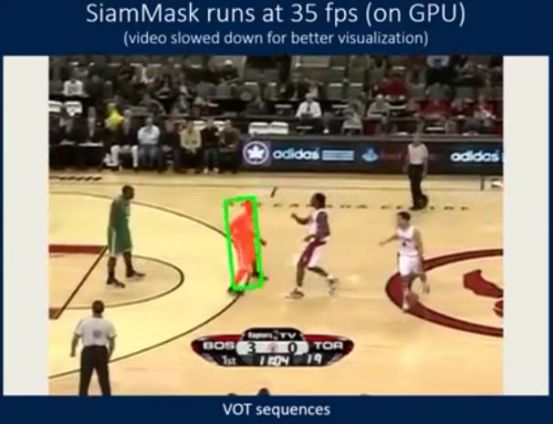 TLDR:这个方法也被戏称为SiamMask,它改善了广受欢迎的全面卷积的Siamese方法的线下训练流程,通过一个二元分类任务增大损失,追踪物品。