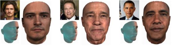使用的模型/架构:3D面部重建过程由可辨别型渲染器实施。成本函数的公式编写主要通过预训练的面部识别网络,且成本函数被优化,方法是全程流动错误、回到有着梯度下降优化的潜藏型参数。端到端可辨别型架构让人们可以使用价廉质优的计算机,优化第一指令衍生物,从而实现将深度网络用于发生器(如统计学模型)或成本函数。