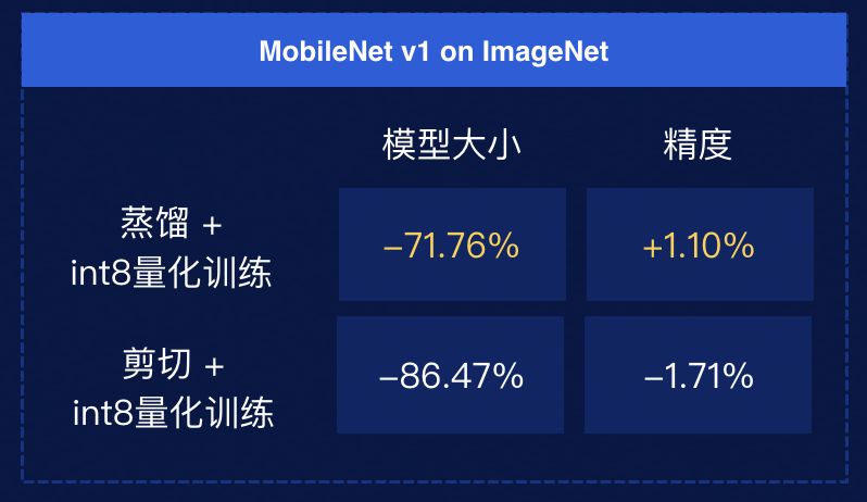 量化训练与蒸馏的组合使用,可同时做到缩减模型大小和提升模型精度。