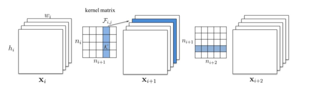 相比传统的蒸馏方法直接用小模型去拟合大模型产生的 soft target,论文「A Gift from Knowledge Distillation: Fast Optimization, Network Minimization and Transfer Learning」用小模型去拟合大模型不同层特征之间的转换关系(flow of the solution procedure),其用一个 FSP 矩阵(特征的内积)来表示不同层特征之间的关系,计算公式如下: