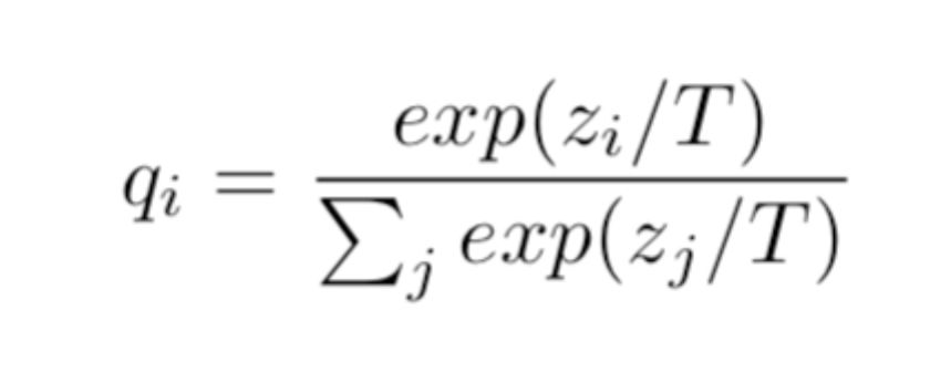 另外,为了使 soft target 中各个类别的概率值更加平滑,文章中还引入了一个温度系数 T 的概念,对大模型输出的概率值做一个平滑处理,具体如下面公式。