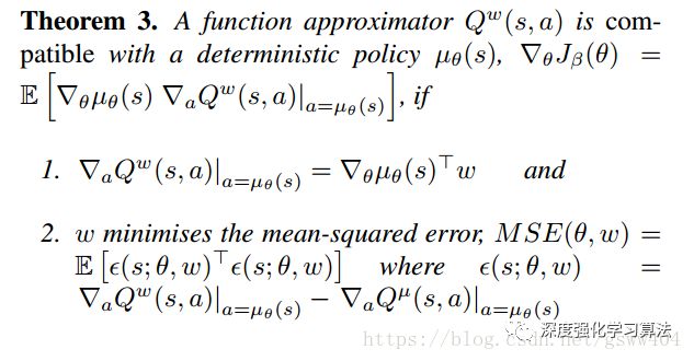 代入确定性政策梯度并不一定会遵循真正的梯度(事实上它也不一定是上升方向)。 类似于随机情况,我们现在找到一类兼容函数逼近器