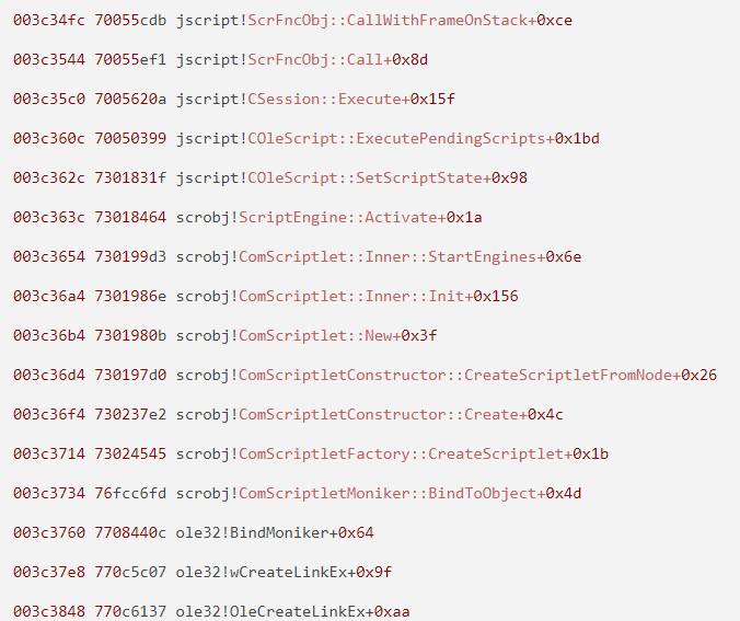 以下栈结构反映了在未打上CVE-2017-0199补丁的环境下样本的执行流程: