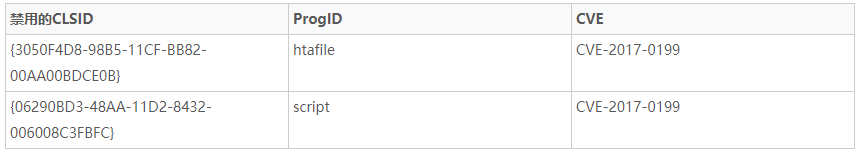 2017年4月,修复CVE-2017-0199时禁用了htafile对象和script对象: