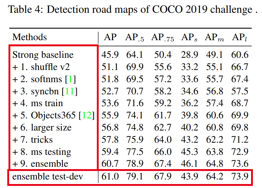 本方案在2019年和2020年COCO挑战赛中取得了最佳成绩。更多细节详见论文原文,强烈推荐学习!
