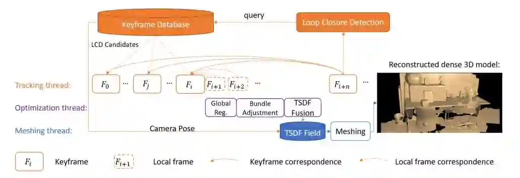 针对便携式设备上稠密3D重建的实际应用,我们提出了FlashFusion,一种快速的大规模的、高分辨率(亚厘米级)3D重建系统,并且无需使用GPU。它通过鲁棒且快速的全局集束调整方案实现全局一致的定位。并且,他实现基于空间散列的体积融合,以300Hz运行,还实现了基于过高效的有效块选择和纹理提取方案的渲染,以25Hz运行。现实世界和已有数据集的广泛实验表明,FlashFusion成功实现了在受限的计算能力下(即仅用便携式设备上的CPU),实现实时、全局一致、高分辨率(5mm)的大规模稠密3D重建。