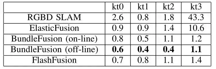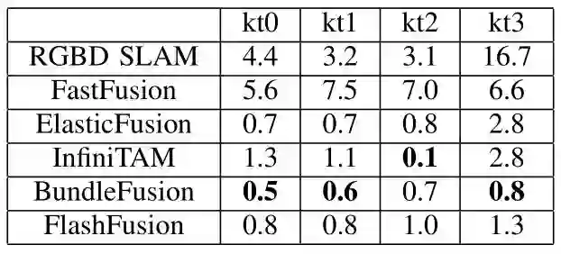 FlashFusion的TSDF和纹理提取的实验结果如下表所示: