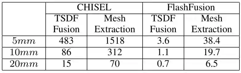 表4. CHISEL和FLASHFUSION之间的效率比较