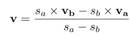 每个顶点的准确的位置v通过两个端点Va、Vb的线性插值