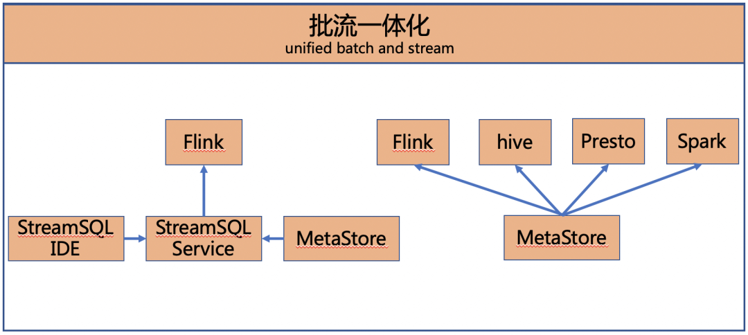 批流一体化:批处理主要是 HiveSQL 和 Spark SQL,如果 Flink 任务也使用 SQL 的话,批处理任务和流处理任务在语法等方面可以进行共享,最终实现一体化的效果。