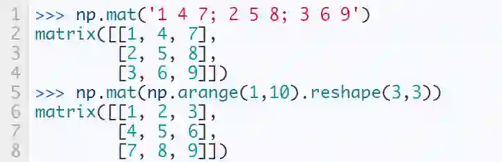 matrix对象可以使用一个Matlab风格的字符串来创建(以空格分隔列,以分号分隔行的字符串),也可以用数组来创建。