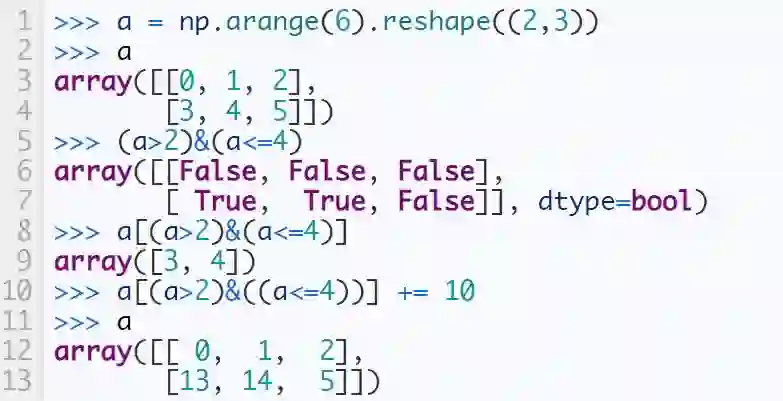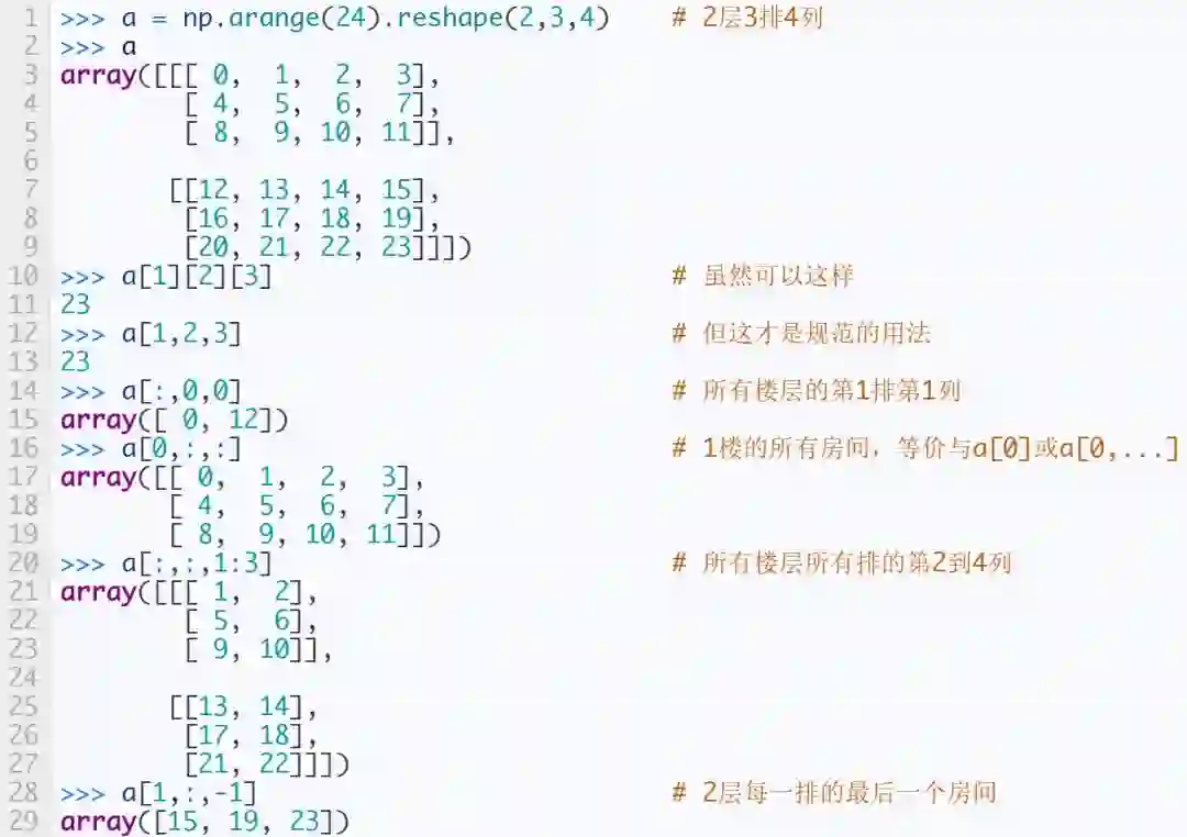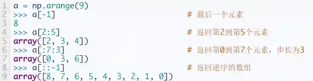 对于一维数组的索引和切片,numpy和python的list一样,甚至更灵活。