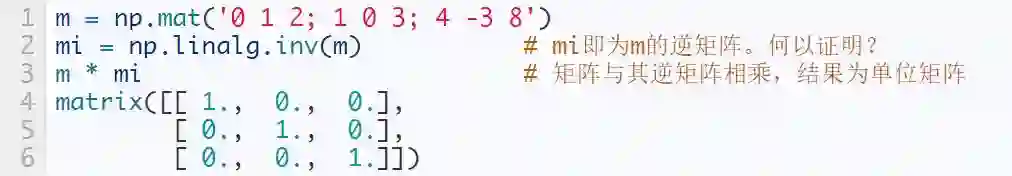 尽管matrix对象本身有逆矩阵的属性,但用numpy.linalg模块求解矩阵的逆,也是非常简单的。