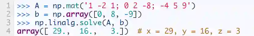 numpy.linalg 是numpy的线性代数模块,可以用来解决逆矩阵、特征值、线性方程组以及行列式等问题。