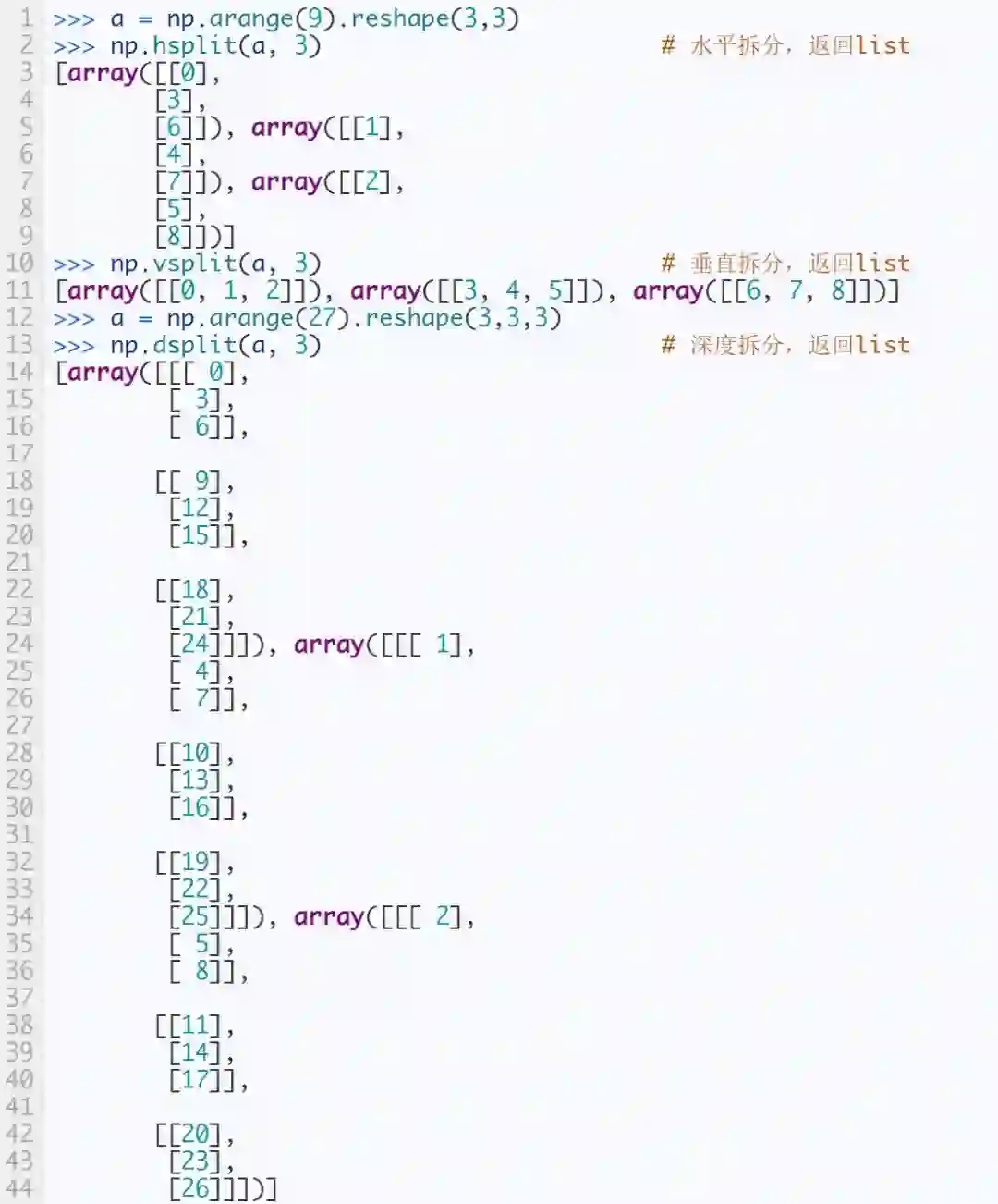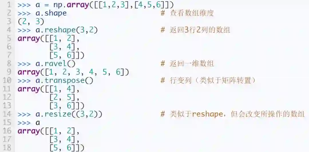 numpy数组的存储顺序和数组的维度是不相干的,因此改变数组的维度是非常便捷的操作,除resize()外,这一类操作不会改变所操作的数组本身的存储顺序。