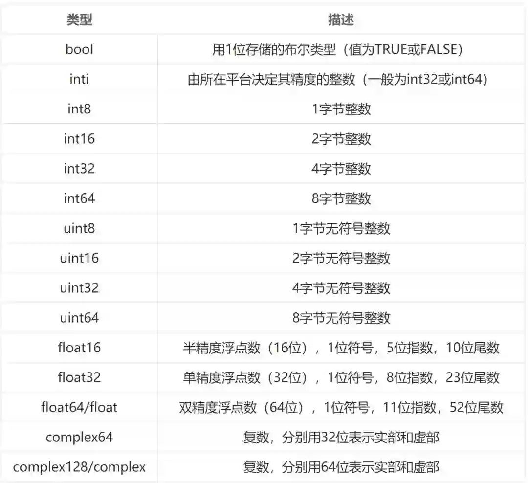 numpy支持的数据类型主要有布尔型(bool)、整型(integrate)、浮点型(float)和复数型(complex),每一种数据类型根据占用内存的字节数又分为多个不同的子类型。常见的数据类型见下表。