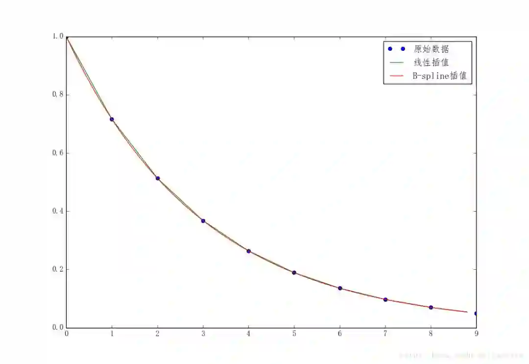 下面的例子清楚地展示了线性插值和样条插值之后的数据形态。