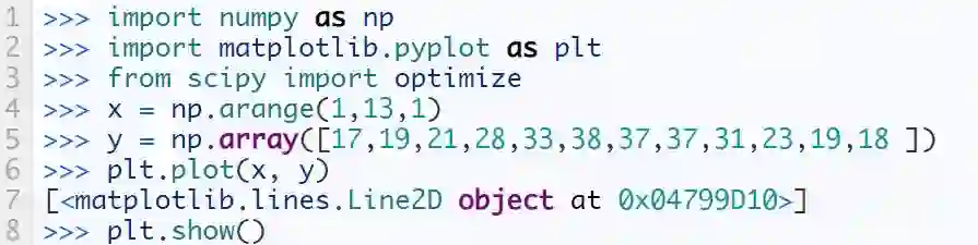 scipy提供的拟合,貌似需要先确定带参数的曲线方程,然后由scipy求解方程,返回曲线参数。我们还是以上面的一组数据为例使用scipy拟合曲线。