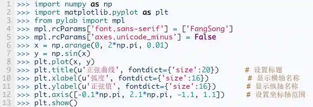 如果你在python的shell中运行下面的代码,而shell的默认编码又不是utf-8的话,中文可能仍然会显示为乱码。你可以尝试着把 u’正弦曲线’ 写成 ‘正弦曲线’.decode(‘gbk’)或者‘正弦曲线’.decode(‘utf-8’)