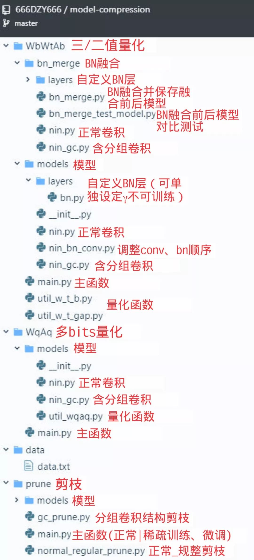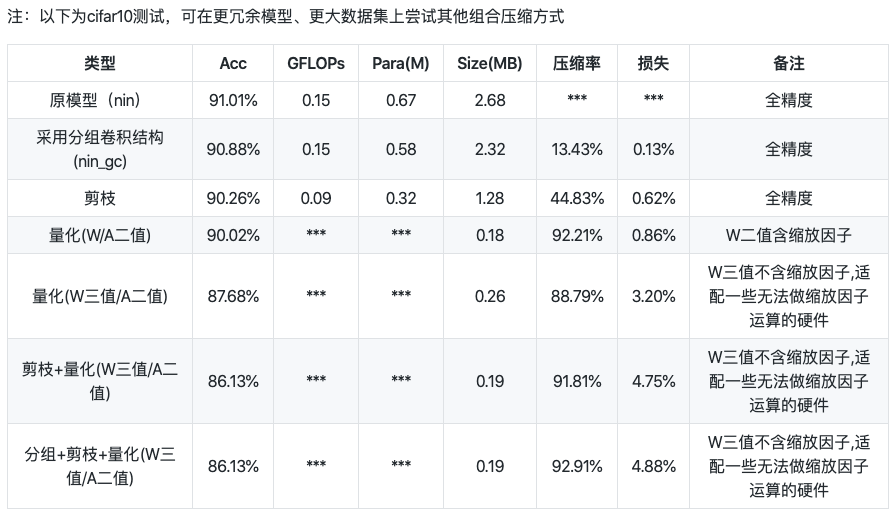 量化:8/4/2 bits(dorefa)、三值/二值(twn/bnn/xnor-net);