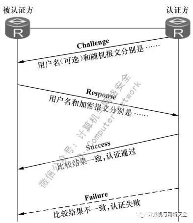 与PAP一样,第一次认证失败后,也不会马上关闭链路,而是再次向客户端提示输入新的用户名和密码进行再次认证,直到规定的最高尝试次数。