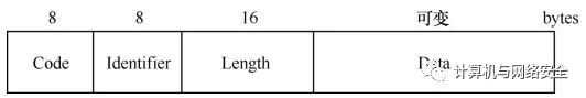 Data:数据,长度可变,具体内容会因PAP报文类型的不同而不同,如果是ACK报文,该字段长度为0;NAK报文中该字段会说明认证失败的原因;Request报文中该字段为用于进行身份认证的用户凭据信息。
