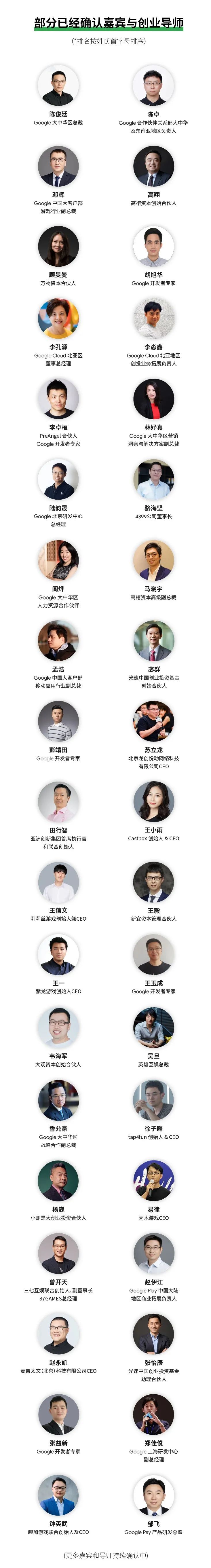 由 Google 专家,企业高管和创投前辈组成的创业导师团一对一创业辅导 (导师名单见文末)