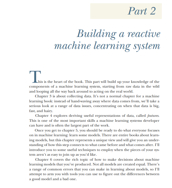 这是本书的核心。这部分将建立您对机器学习系统组件的知识,从原始数据开始,一直循环到真实世界。