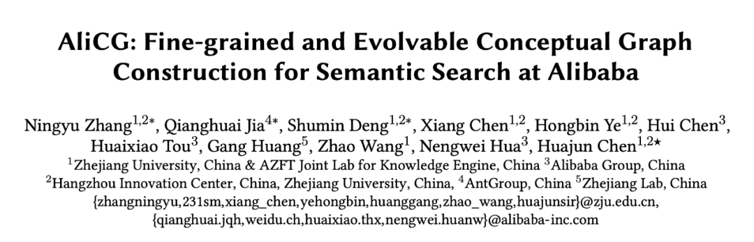 针对这一问题,浙江大学和阿里巴巴的算法工程师们一起提出了一种全新的自动化概念图谱构建方法,其能够自动的从海量文本及半结构化数据中构建细粒度的中文概念层次结构,相关技术的论文已经被国际顶会 KDD 2021 录用。