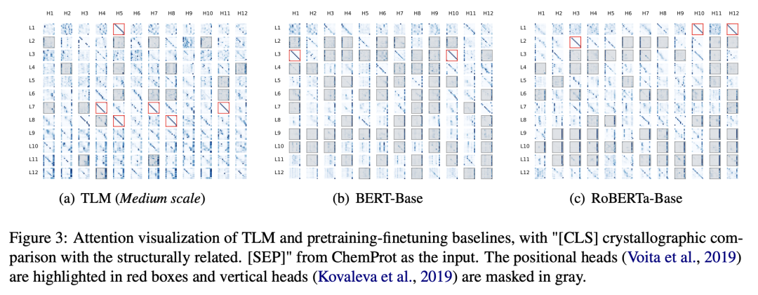 为了探究TLM高效性更本质的来源,作者们对模型的每个注意力头所输出的注意力结果进行了可视化分析。