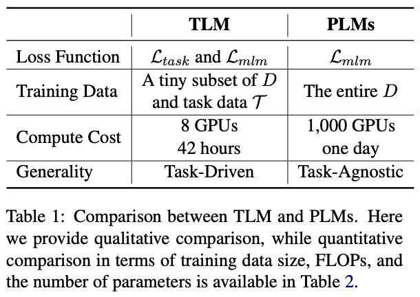 总结来说,PLM以极高的成本学习尽可能多的任务无关的知识,而TLM以非常低的成本针对每个任务学习相关知识。