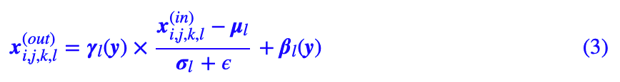 之所以说这样的 BN 是无条件的,是因为参数 β,γ 纯粹由梯度下降得到,不依赖于输入。相应地,如果 β,γ 依赖于某个输入 y,那么就称为条件 BN: