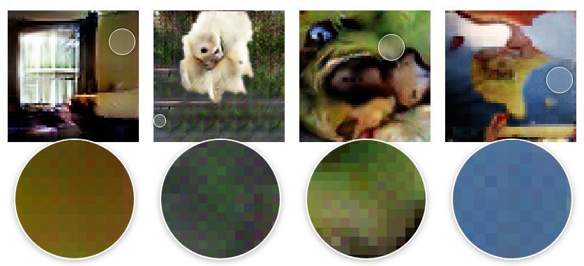 公认的说法是,由于 DCGAN 的生成器中使用了反卷积,而反卷积固有地存在“棋盘效应(Checkerboard Artifacts)”,这个棋盘效应约束了DCGAN的生成能力上限。关于棋盘效应,详细可以参考 Deconvolution and Checkerboard Artifacts [3](强烈推荐,超多效果图示)。