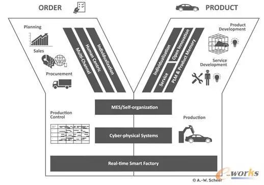 著名业务流程管理专家August-Wilhelm Scheer教授提出的智能工厂框架强调了MES系统在智能工厂建设中的枢纽作用。
