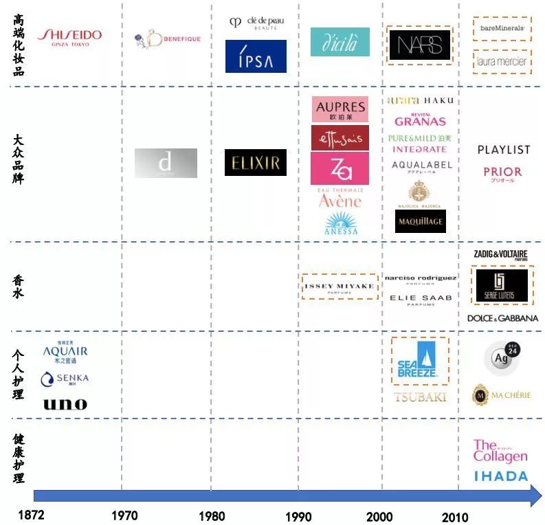 图片来源:国泰君安证券研究。其中橙色边框为收购品牌;其余为自我孵化品牌(香水主要为授权经营)
