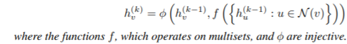b)A 的图级别的 readout 函数,运行在节点特征的多重集上{h(k)(v)},是一个单射函数。